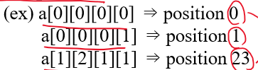 마지막 index가 a[1][2][1][1] 라면 2 * 3* 3* 2 = 24이다.
