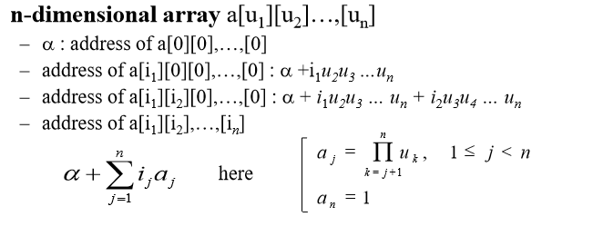 고차원행렬 a[u1][u2],..,[un]가 있다고 가정하자. 총 구성 요소의 개수는 아래와 같다.