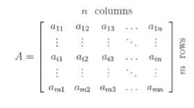 m개의 행과 n개의 열로 이루어져 있다. 총 m과 n개의 개수로 이루어져 있다.