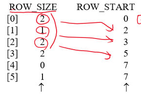 위와 같이 원래 매트릭스의 col의 개수를 세면 새로운 전치행렬의 시작 위치를 알 수 있음.