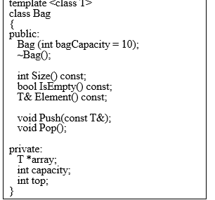 Bag 클래스와 멤버들을 저장하기 전에 아래와 같이 template를 정의해 주자.
