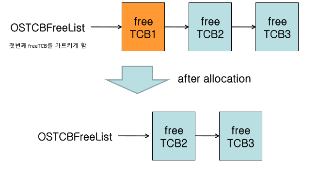 시스템이 초기화되면 OSTCBFreeList를 생성한다. 모든 free TCB는 단방향 링크드리스트로 연결되어 있다.