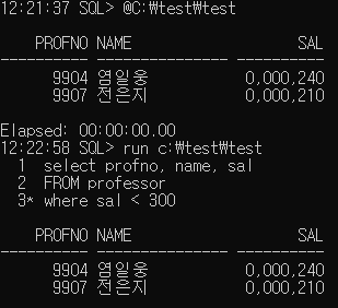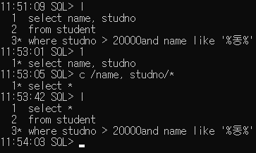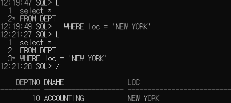 L (list) [숫자]: 마지막 DML문 출력 (숫자 입력할 시 해당 라인 줄 가져옴.)