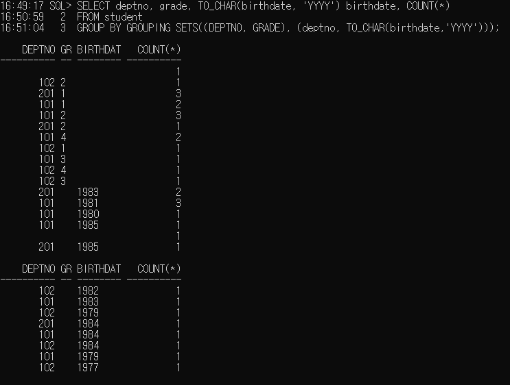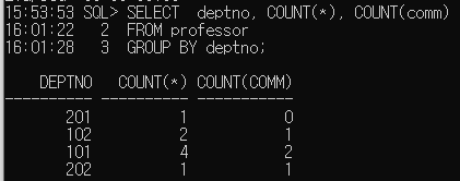 4. GROUP BY 절에서 사용하지 않은 칼럼은 SELECT에서 가져올 수 없다. (그룹 함수 제외)
