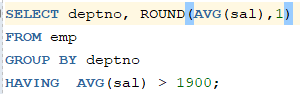 사원 테이블에서 평균 급여가 1900 이상인 부서의