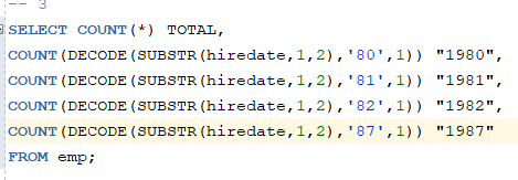 3. 1980, 1981, 1982, 1987년에 입사한 사원에 대해 전체 사원 수와 연도별 사원 수를 출력하세요.