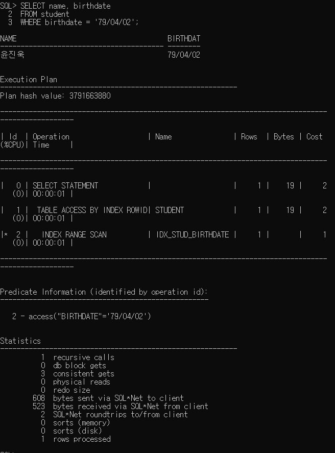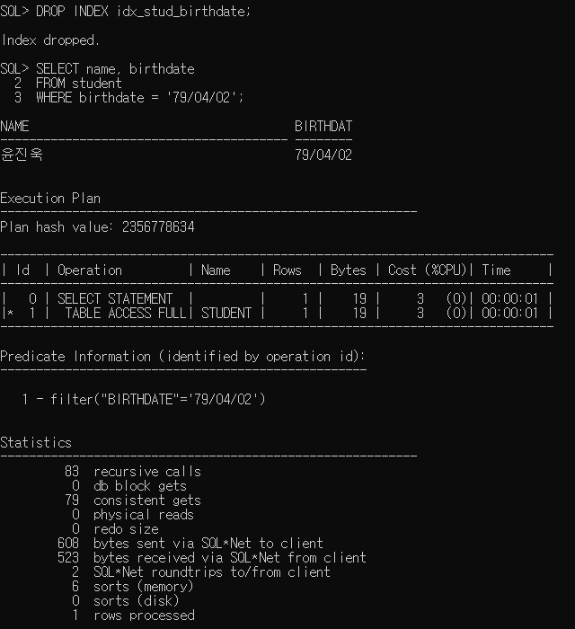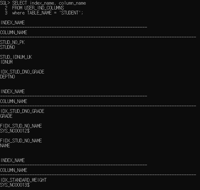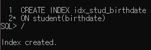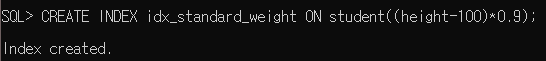 예) 학생 테이블에서 학생들의 비만도 측정을 위해 표준 체중을 구하고자 한다. 표준체중에 대한 함수 기반 인덱스를 생성하여라.