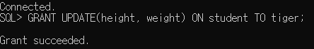 CONNECT : 세션을 생성할 수 있는 권한, 테이블 , 뷰 생성 가능 권한