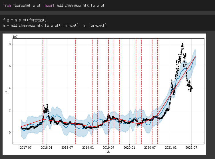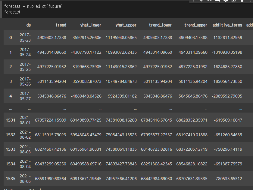 그리고 위의 코드를 실행해주면 생성된 날짜의 값을 예측해준다.