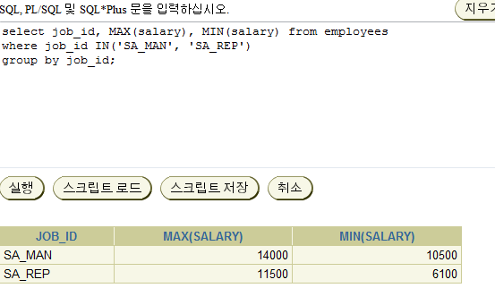 12000 이상 연봉의 평균의 소수점을 반올림하는 집합함수 예제이다. (소수점 아래를 절삭하고 싶다면 TRUNC)