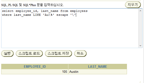 d 앞에 어떤 글자가 상관없고 (%) 뒤에 어떤 한 글자(_)가 오는 data (LIKE)